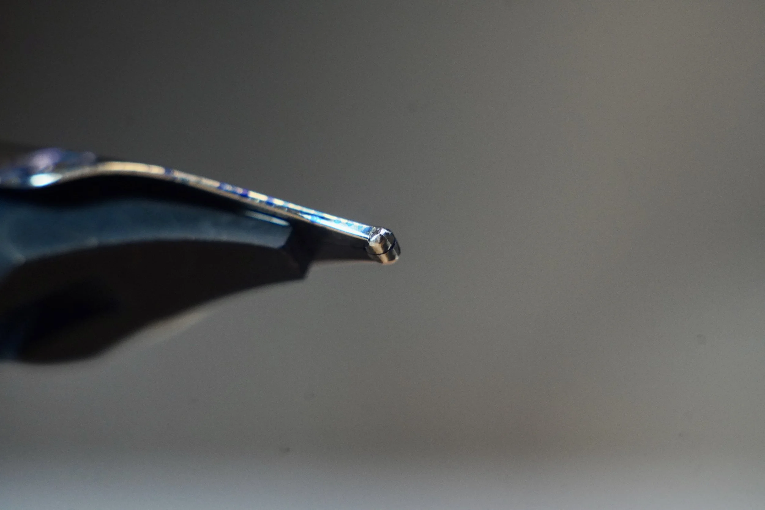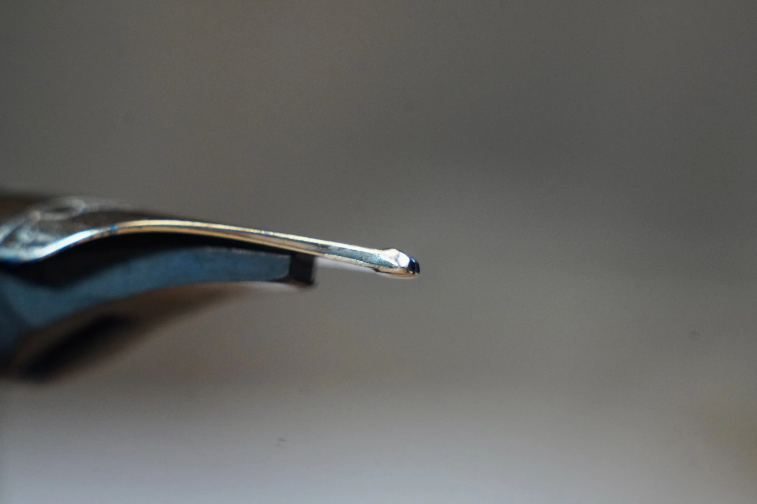 From here, the top two corners are cut diagonally at 45° in order to create sharp corners on the bottom flat edge. On the top edge, a diagonal cut is made slanting towards the bottom flat edge and creating Isoceles Trapezoid shape. The edges are smoothed but not rounded on a traditional formal italic nib. This means that a traditional formal italic nib is sharp to write with and may sometimes feel like cutting paper (though a well ground one should not catch paper). Due to the sharpness of this nib, many people seek a smoother version of this nib. This is where cursive italics and cursive smooth italics come in. Both of these italic variations maintain the same basic shape but are rounded differently from traditional italic nibs. A cursive italic is generally rounded on the bottom edge while maintaining the same shape. This will make the nib write wider horizontally because the contact surface of the tipping is increased from a sharp edge to a rounded edge, which increases the amount of contact that the nib makes with the paper. At Kyuseido, we grind a cursive smooth italic with a slant upwards from the bottom edge. This upwards slant gives the nib a much smoother writing experience, but will make the horizontal strong a bit wider than even the cursive italic, but still much thinner and sharper than a stub.